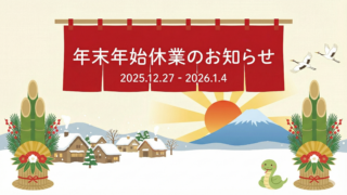 お知らせ2025年12月20日【年末年始休業のお知らせ】12月27日(土)〜1月4日(日)までお休みをいただきます